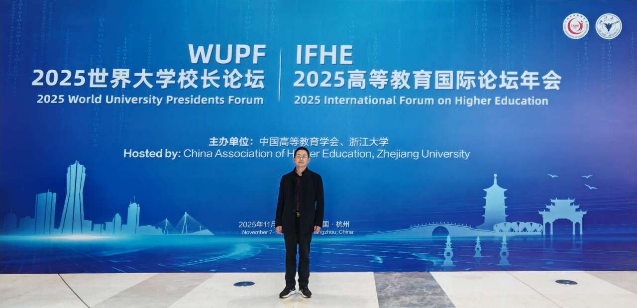 11月8-9日,由中国高等教育学会和浙江大学联合主办的“2025世界大学校长论坛”和“2025高等教育国际论坛年会”在杭州国际博览中心隆重举行。我校文学与传媒学院教授陈春雷参加了开幕式和论坛活动。