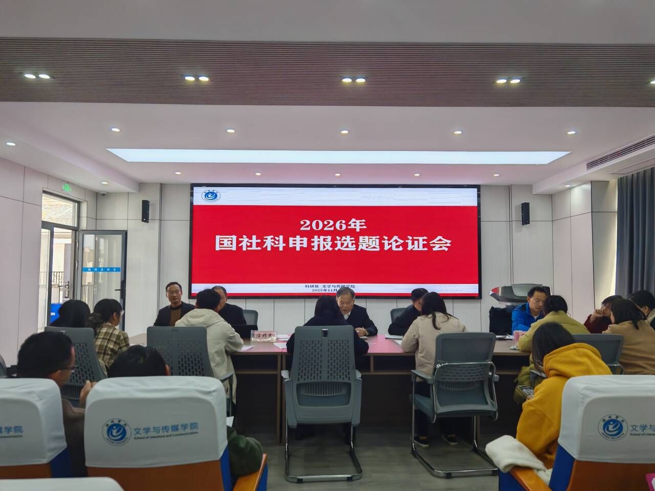 为切实推进2026年国家社科基金项目申报工作,文学与传媒学院于11月27日在视听实训室举行选题论证会,特邀北京师范大学张智华教授、安徽大学李俊标教授、安徽师范大学沈正赋教授、安庆师范大学汪祚民教授莅临指导,安徽师范大学胡传志和储泰松两位教授通过网络在线指导,学院所有拟申报2026年度国家社科基金项目的教师参加会议。