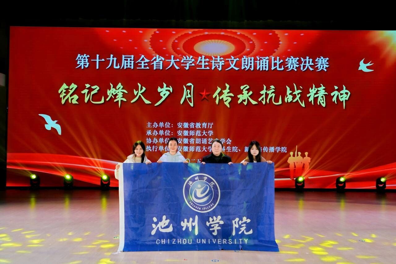 11月28日,第十九届安徽省大学生诗文朗诵比赛决赛在安徽师范大学花津大礼堂圆满落幕,经过激烈的角逐,池州学院文学与传媒学院选送的作品斩获非专业组一等奖,在此项赛事中取得“零的突破”,另有一篇作品获得专业组优秀奖。