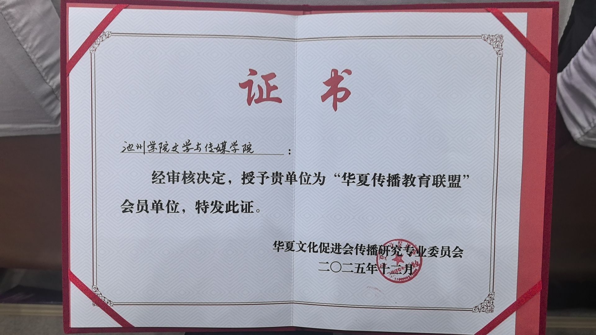 2025年12月5日,“赓续文脉·融创当代:安徽文化传播观念及其实践研究会议”在安庆师范大学举行,文学与传媒学院广告学系教师毕非易参加会议,并代表文学与传媒学院领取“华夏传播教育联盟”会员单位证书。