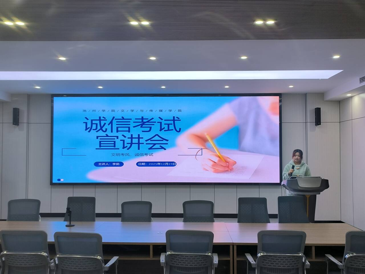 12月29日晚,文学与传媒学院学生会学习部在博物南三楼视听实训室举办了诚信考试宣讲会,学院全体学习委员参加了宣讲会。