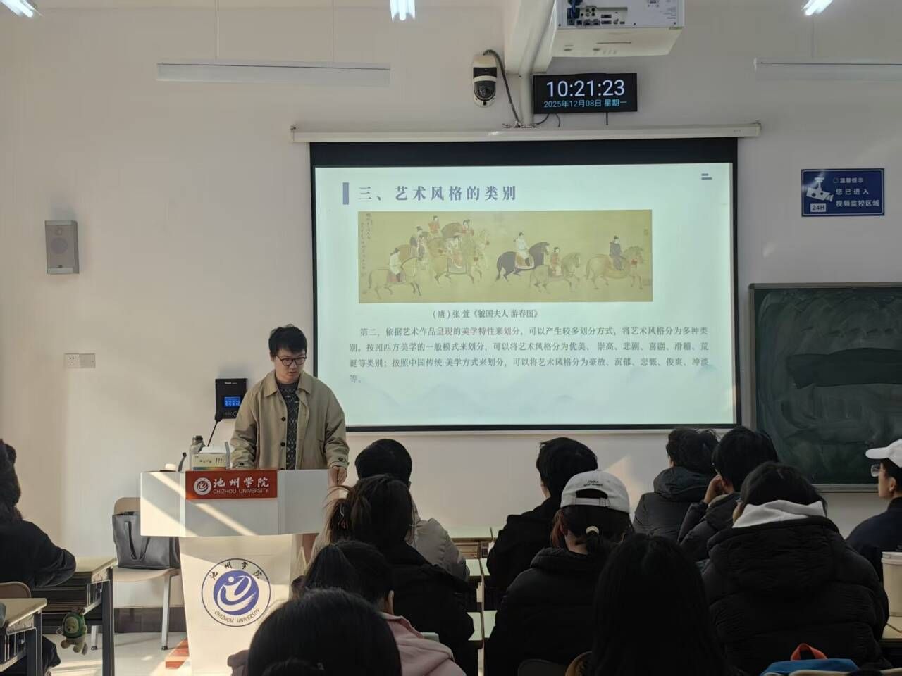 12月15日下午,文学与传媒学院广告学系教师毕非易在公共教学楼南507教室开展《艺术学概论》课程思政示范公开课,广告学系教师到场观摩。